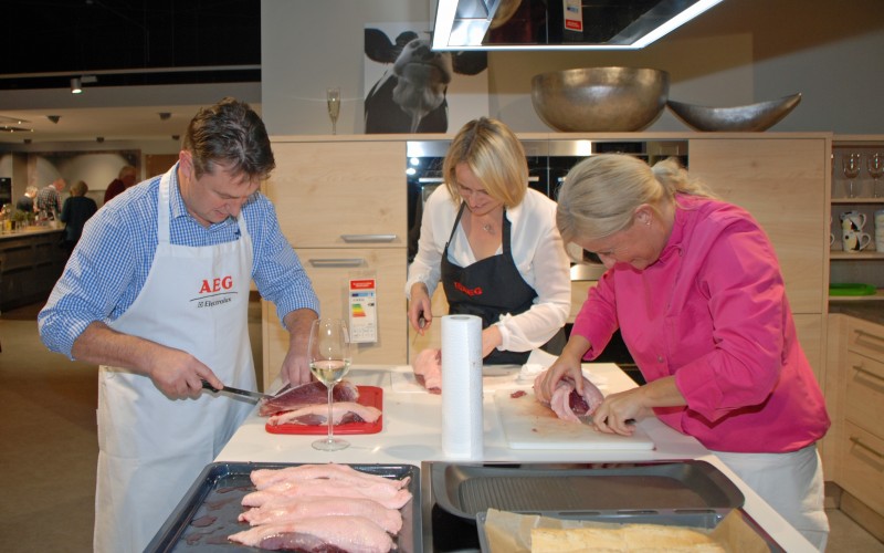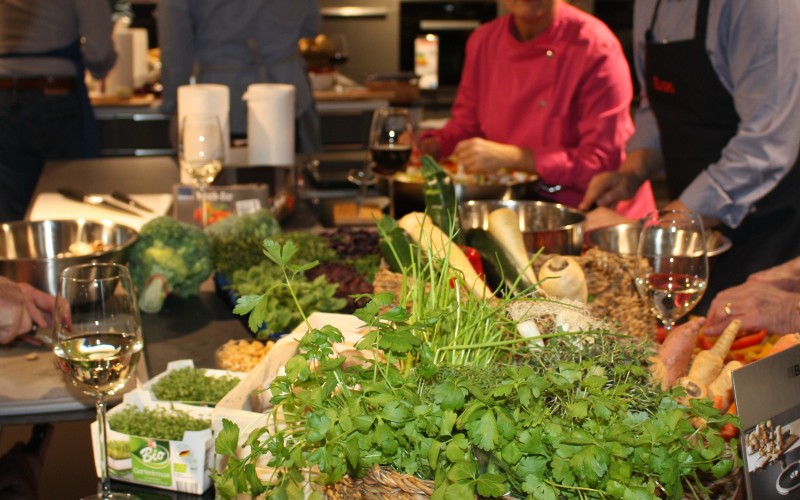 Sie möchten mit Ihren Liebsten oder Kollegen in entspannter Atmosphäre und in Begleitung eines Profi-Kochs genussvolle Gerichte ausprobieren? Ob anlässlich eines gemütlichen Kochabends in familiärem Kreis, einer Betriebs- oder Weihnachtsfeier: Für Gruppen von 15 bis 50 Personen verwandeln wir unsere Küchenwelt regelmäßig in eine Kocharena. Teilen Sie uns einfach Ihren Termin- und Rezeptwunsch mit. Im Vorfeld Ihres individuellen Kochevents stellen wir alle benötigten Lebensmittel und Küchenutensilien für Ihr gewünschtes kulinarisches Erlebnis bereit.